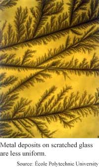 flat layer of metal crystals, or dendrites, to grow on glass or plastic